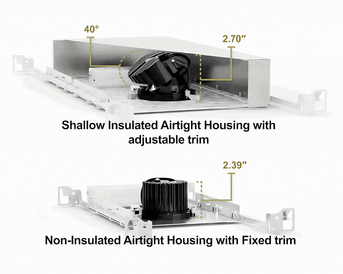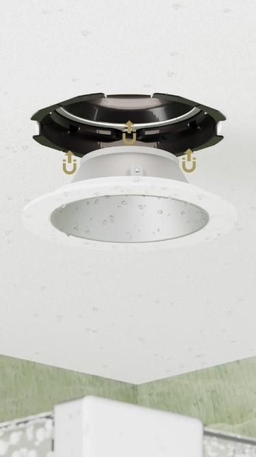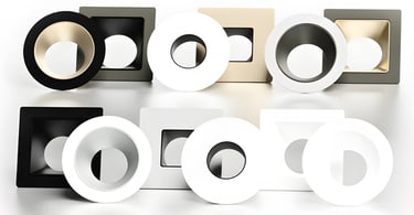 • Modular design representation: Showcases interchangeable trims and optics for different lighting outcomes.