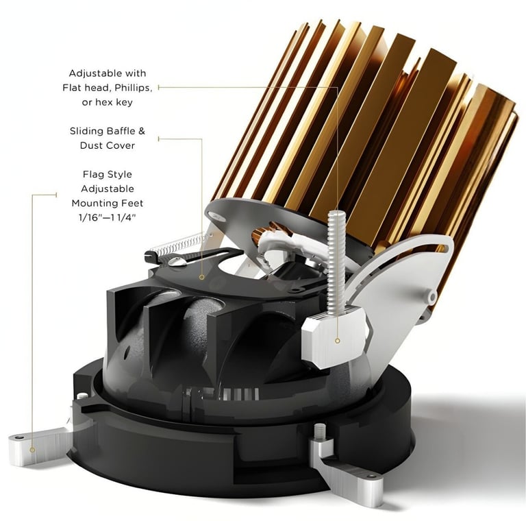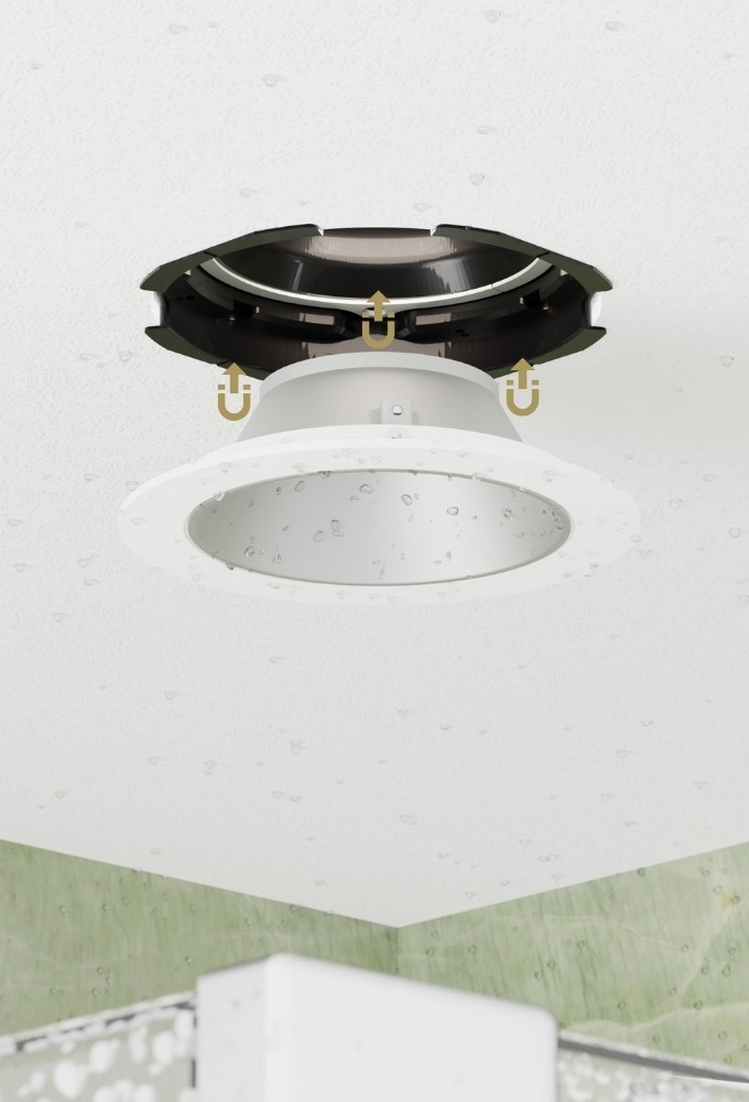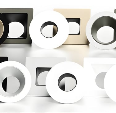 • Modular design representation: Showcases interchangeable trims and optics for different lighting outcomes.